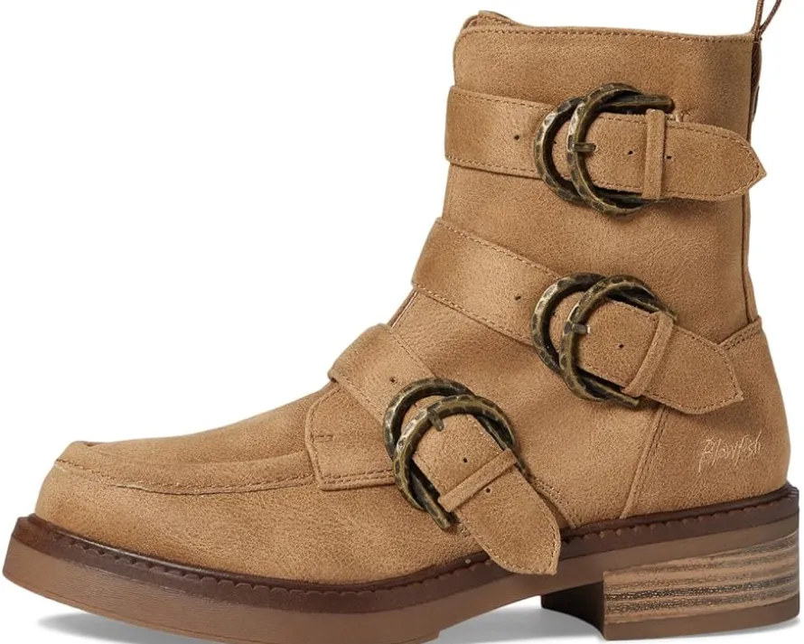- Satisfy your fashion lover soul wearing the ankle-high Blowfish® Malibu Vigor Ankle Boots. Featuring buckle accented multiple straps, this round toe pair has faux suede upper construction with synthetic lining and cushioning eco-friendly BLOOM footbed.