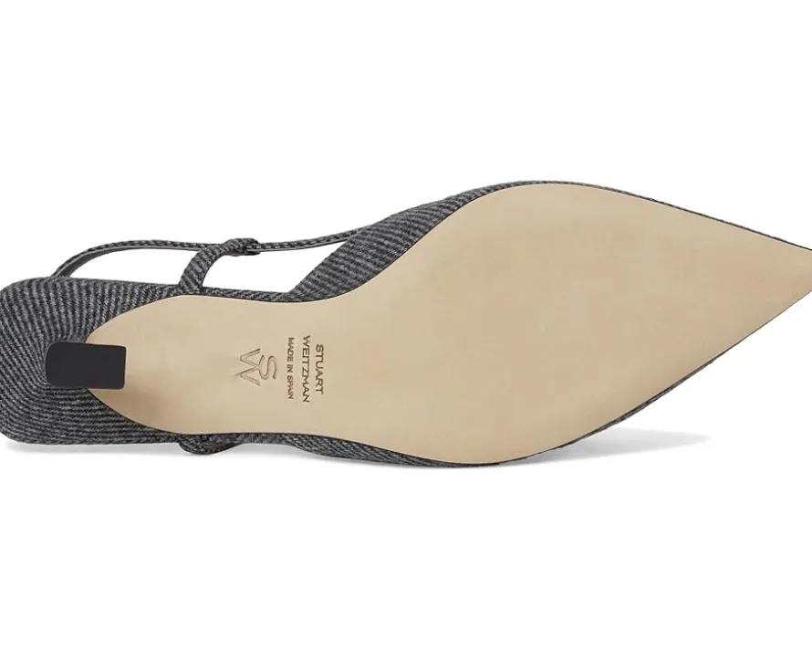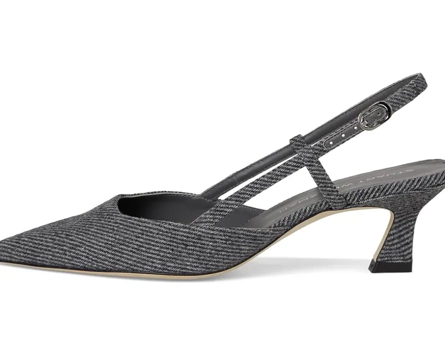 - Embrace luxury and comfort styling Stuart Weitzman® Vinnie 50 Slingback. Crafted from luxurious leather, this chic slingback combines a sleek pointed toe with a stiletto heel for a touch of sophistication and edge. The adjustable buckle closure ensures a secure fit while adding a polished detail. With its sumptuous leather upper, lining, insole, and outsole, this versatile design seamlessly transitions from day to night.