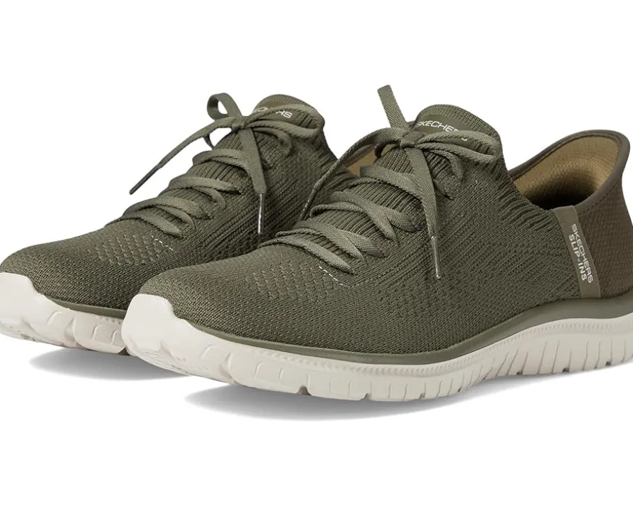 - Step into effortless comfort with SKECHERS® Virtue – Divinity Hands Free Slip-Ins. Designed with the exclusive Heel Pillow™, these shoes feature a Stretch Fit® engineered knit upper with fixed laces and a cushioned Skechers Air-Cooled Memory Foam® removable insole. The Skechers Hands Free Slip-ins® offer an easy fit.