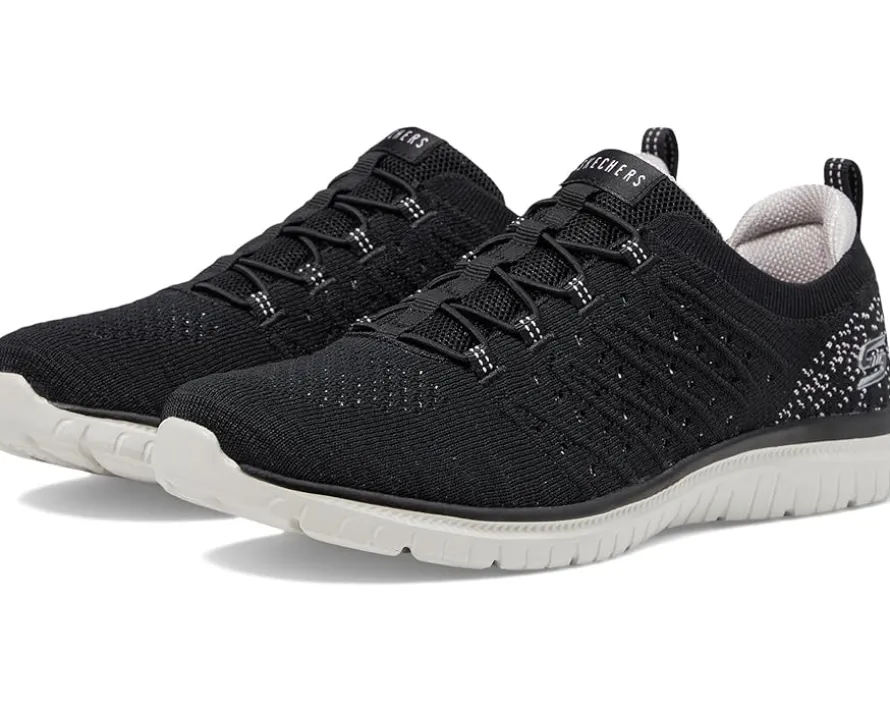- Make your everyday jogging much more fun and comfortable wearing SKECHERS® Virtue Show Runner Shoes. These feature a round-toe silhouette with a bungee lace closure and ankle pull tab for donning & doffing. The low-top running shoes are crafted with a breathable & engineered knit upper and a memory foam rubber insole for ultimate comfort.