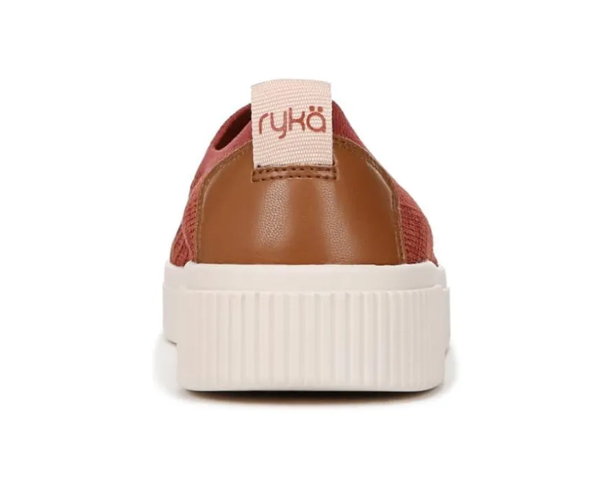 - Ideal for everyday wear, the Ryka® Vista Slip-On sneakers are designed to fit a woman’s unique foot shape and muscle movement. Featuring softer foot cushioning, roomier toe, and a narrow heel, these sneaker shoes make a great addition to your footwear collection. Their cushioned EVA heel cup surrounds your foot for superior comfort and performance. With their slip-on style, they offer easy on and off. Walk with comfort and style by wearing these comfy sneakers.