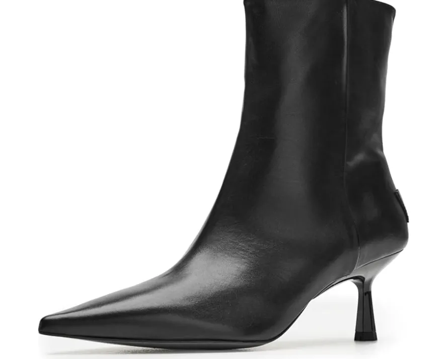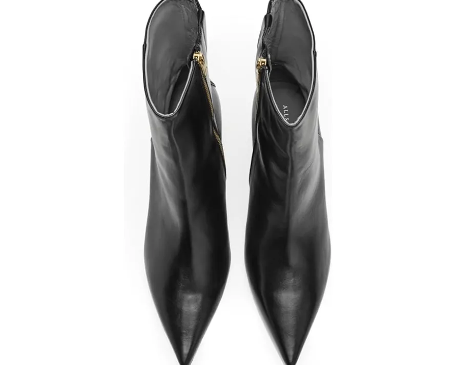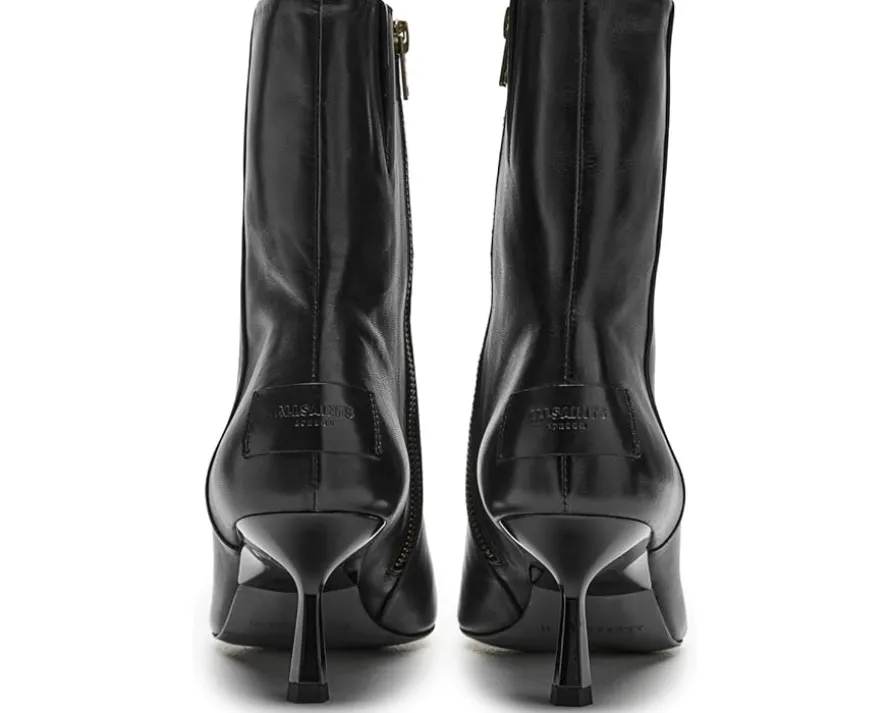 - A stylish spool heel atop the pointy toe defines the sleek look of AllSaints™ Vivian Boots. With a side zipper closure, the mid-calf footwear boasts leather upper and lining construction.