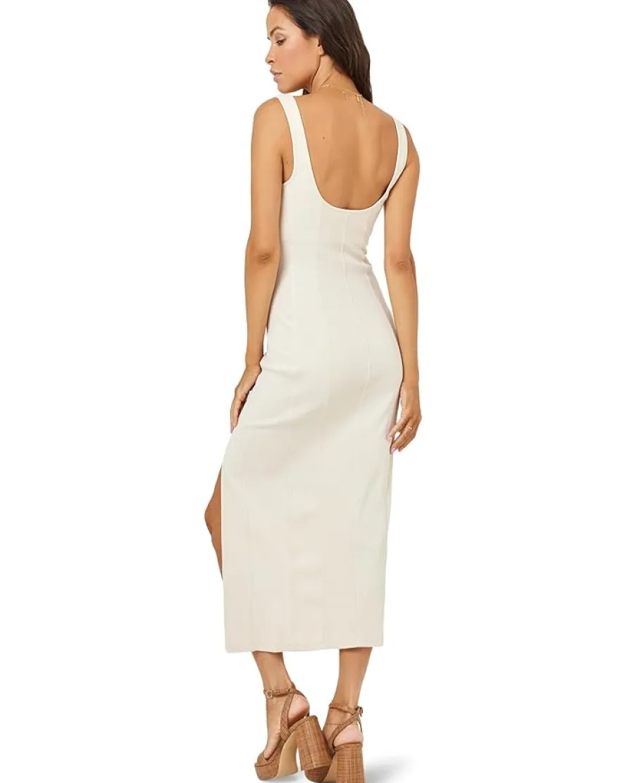 - Minimal yet alluring, the L*Space® Vivienne Dress beautifully defines your feminine flair while keeping your comfort game intact wherever you go. Tailored in a fitted, bodycon silhouette, this stretch-blend, solid-colored, ribbed dress displays a sleeveless design with a squared scoop neckline, thick shoulder straps, a deep U-back, and a daring leg slit on the side.