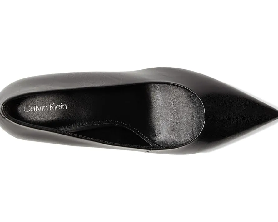 - The Calvin Klein® Voneta pumps redefine elegance with their sleek design and versatile appeal, making them the ultimate wardrobe staple. Crafted with a smooth leather upper and soft polyester lining, they promise both durability and comfort. The slip-on silhouette with a pointy toe delivers a chic, polished look, while the mid stiletto kitten heel adds just the right lift for all-day confidence. Designed with a lightweight EVA outsole, these pumps ensure effortless movement from boardroom to evening out.