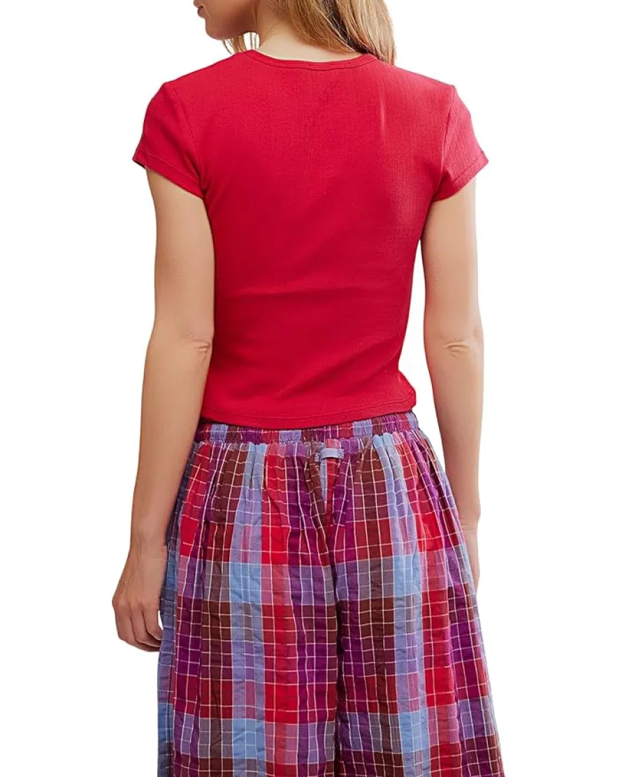 - The Free People™ Wait A Minute Baby Tee blends feminine charm with everyday comfort. Crafted from soft, light fabric, this fitted tee offers a flattering silhouette. With short sleeves, this piece is perfect for layering or wearing solo for an elegant, understated look.