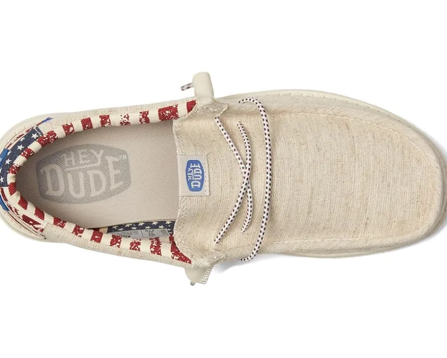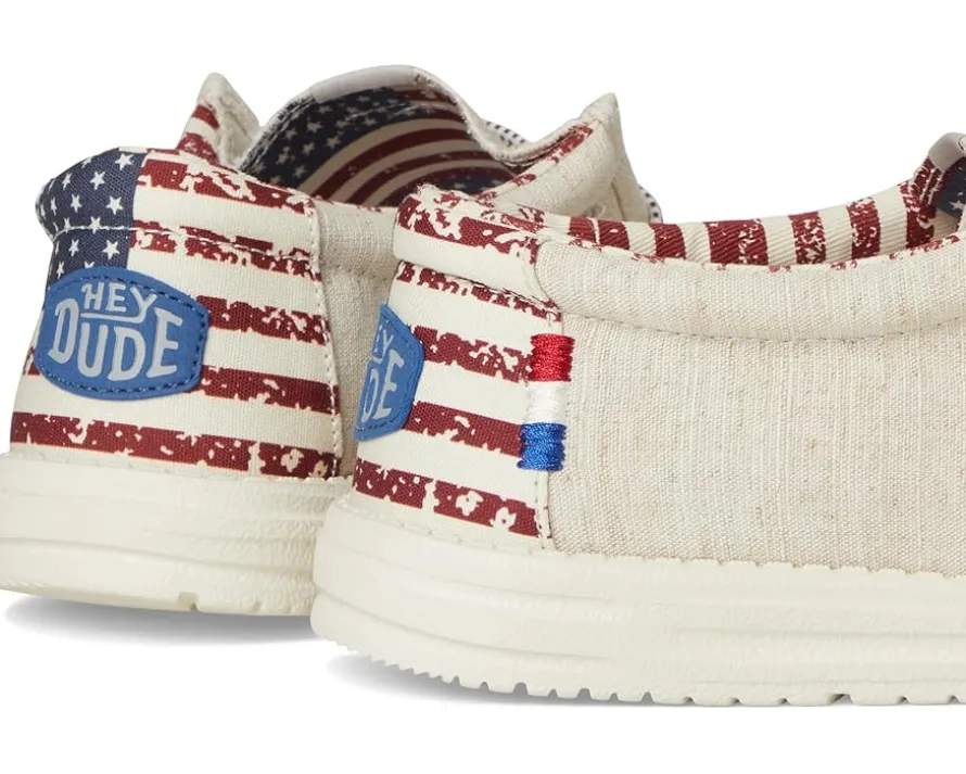 - Let freedom ring. The Wally Patriotic is your all-American go-to. The cotton-canvas upper is breathable, durable and BBQ-ready. The foam insole is for do-everything, warm-weather seasons. And the flexible, lightweight outsole adds just another HEYDUDE™ feature you love. A stars-and-stripes style that’s made for summer days
