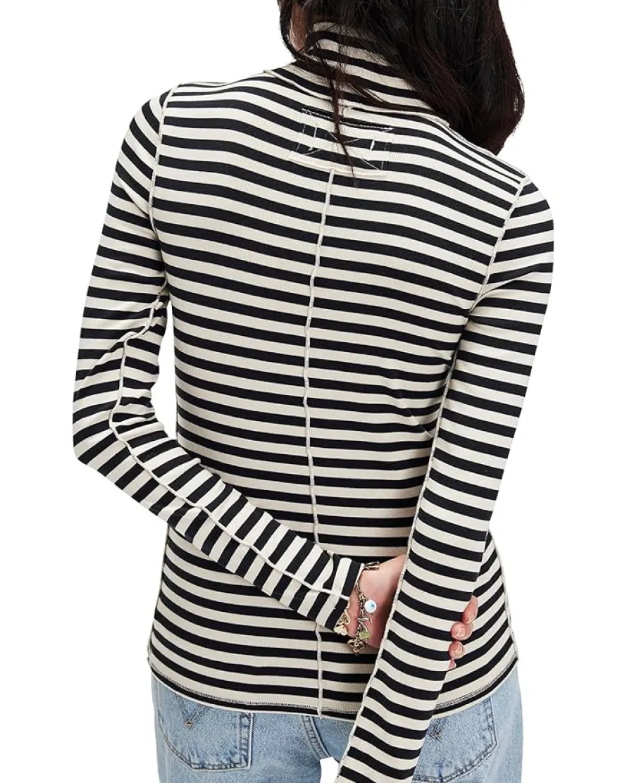 - Designed in a ribbed knit fabrication with striped detailing, the Free People™ We The Free Good Good Stripe Turtleneck features a slim fit silhouette. It has a turtle neckline, long sleeves, and exposed seam detailing that adds a subtle edge.