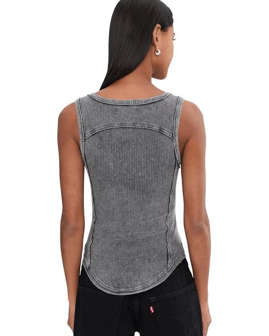 - A staple tank gets a touch of edge with this hardware-adorned style from We The Free, featured in a ribbed fabrication with overall-inspired straps for an unexpected accent. The metal details take this tank to the next level.