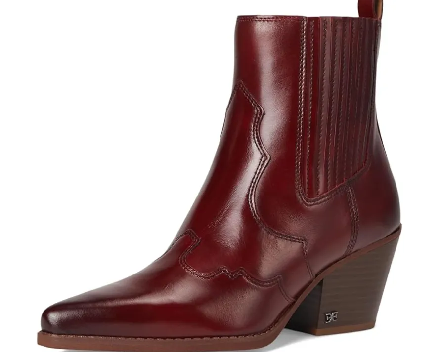 - Saddle up for serious style wearing the Sam Edelman® West, where classic cowboy charm meets modern-day flair. Crafted with a luxe leather upper and a sleek pointed toe, these ankle-high boots bring a bold attitude to every outfit. The smooth PU lining and cushioned faux leather insole keep comfort riding high, while the durable rubber outsole and sturdy Cuban heel provide all-day support with a fashionable lift. Designed with an easy pull-on style, they’re your go-to boots for spontaneous adventures and curated street style.