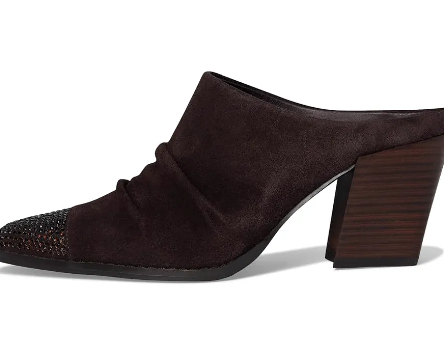 - Slip into luxe confidence wearing the Donald Pliner® Westansp heeled mule. Crafted with a rich leather upper, smooth leather lining, and cushioned leather insole, it’s made to impress from the inside out. The pull-on silhouette showcases refined ruching, blending relaxed sophistication with trend-forward design. A crystal-embellished toe welt brings the sparkle, instantly elevating your step with subtle glam. Finished with a stacked block heel and durable rubber outsole, this mule delivers stability, comfort, and style in one sleek package.