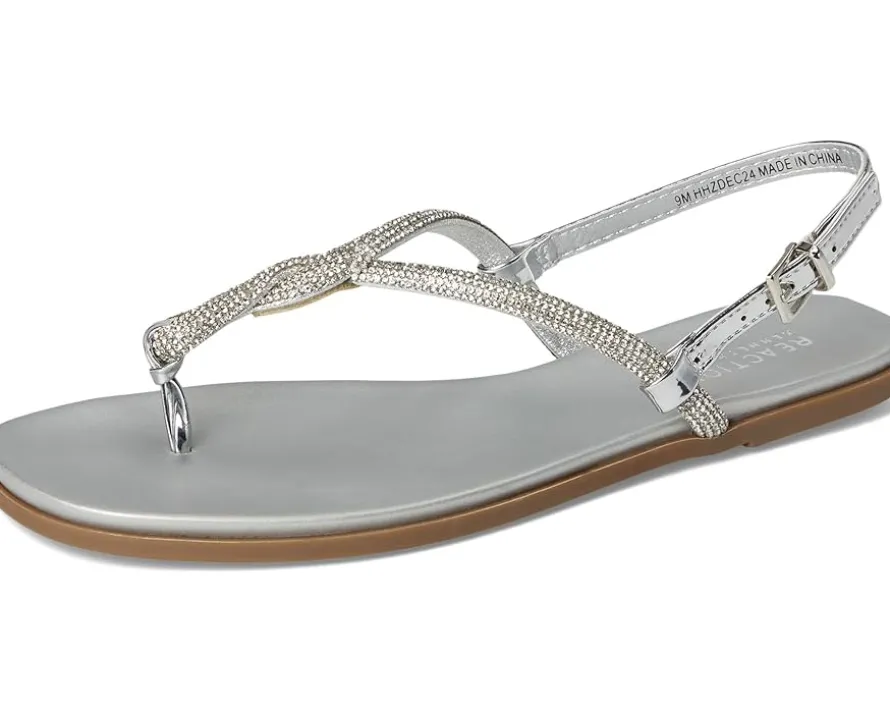 - The Kenneth Cole Reaction® Whitney is a comfortable flat sandal with backstrap for added support and shiny detail. The jeweled thong-style flats feature a faux leather upper, faux leather lining, and a faux leather insole. The ankle strap and buckle closure ensures a secure fit.