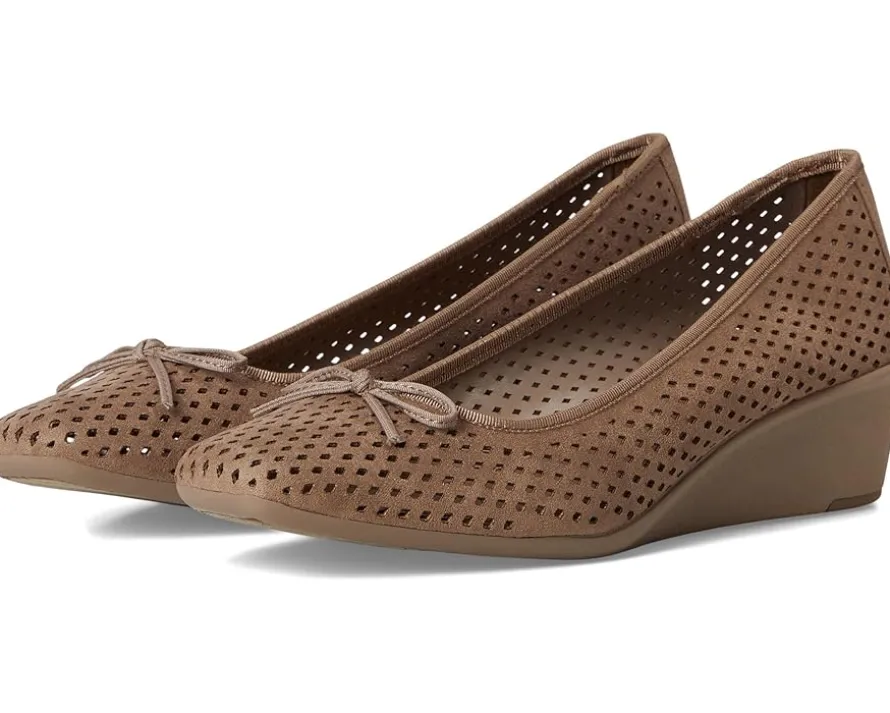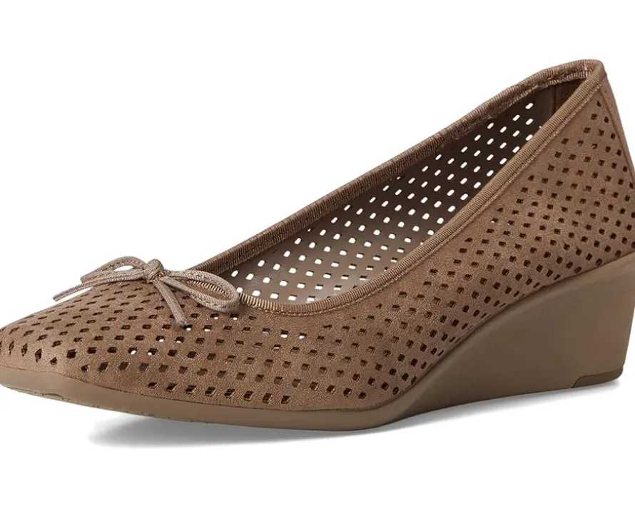 - Step out with a marvelous yet chic flair wearing the Anne Klein® Winslet. The slip-on footwear features polyurethane upper with allover breathable perforations and sleek wedge heel.