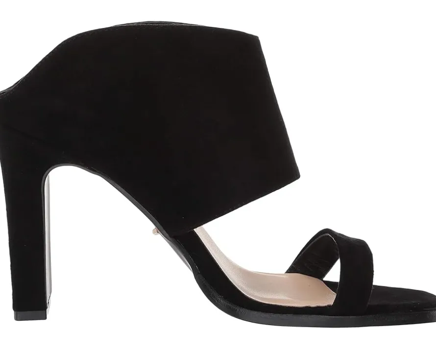 - Heeled sandals feature a suede leather upper.