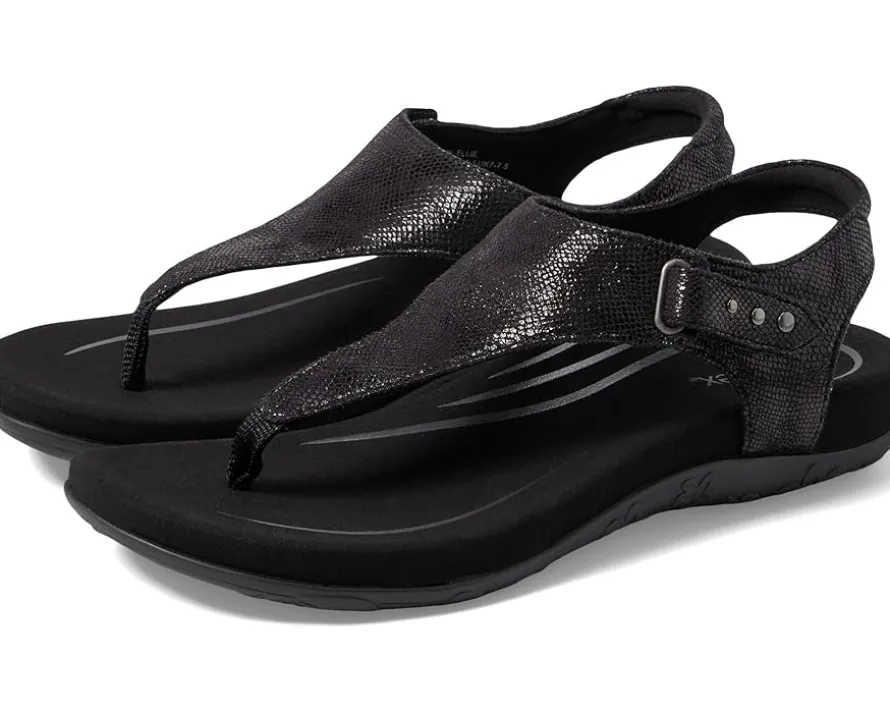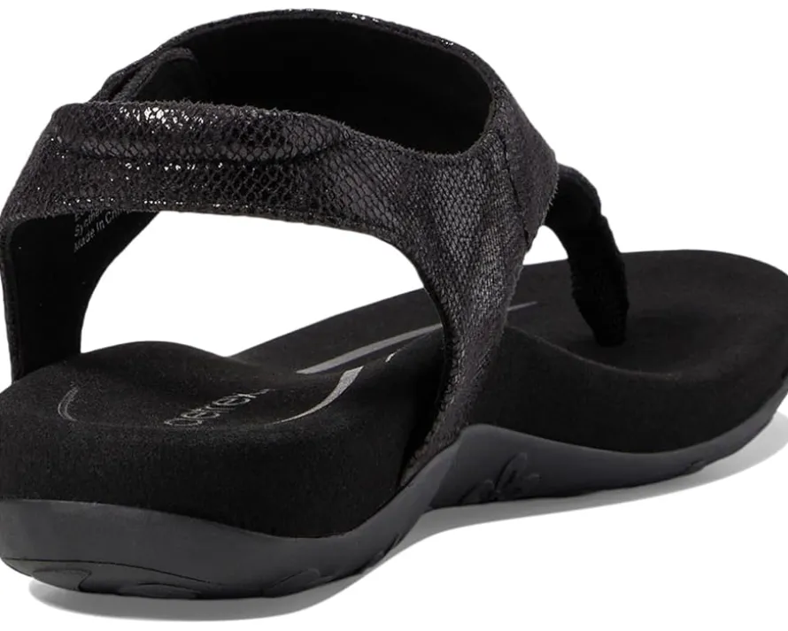 - The Aetrex® Ellie thong style sandals feature arch support that helps to stabilize and align feet, memory foam midsole, adjustable ankle strap buckle, and hook-and-loop closure. It has a faux leather upper.