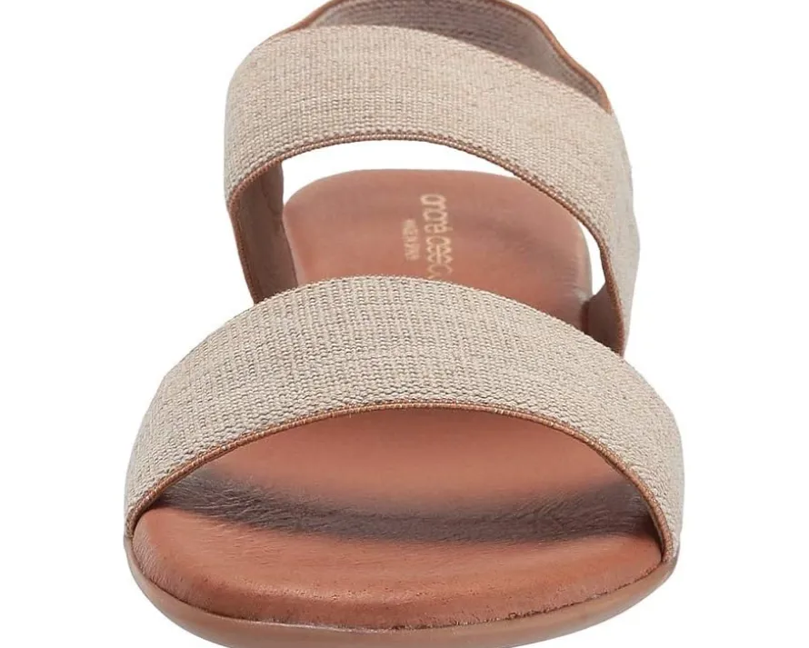 - The Andre Assous™ Nigella sandal exudes timeless style and comfort with an elastic upper, dual straps over the instep and vamp, and a mini stacked wedge heel.