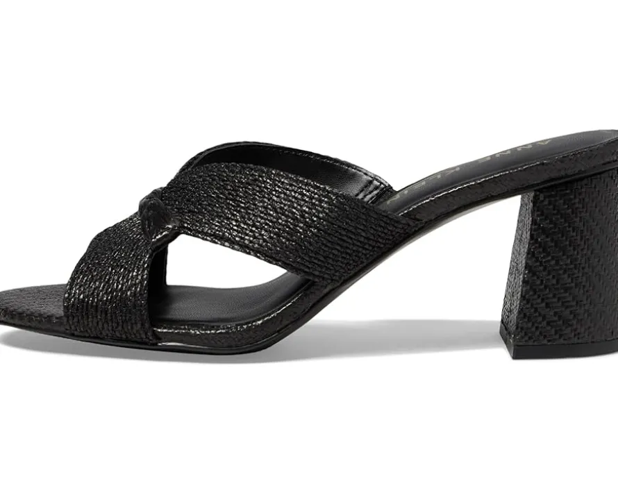 - Emanate and aura of elegant sophistication wearing Anne Klein® Aubrie sandals. It features faux leather upper, man-made lining, and rubber cushioned insole. A slip-on style, wide vamp, and block heel allows firm traction without causing discomfort. An Iflex technology provides a 90 degree bend, making it an indispensable addition to your footwear collection.