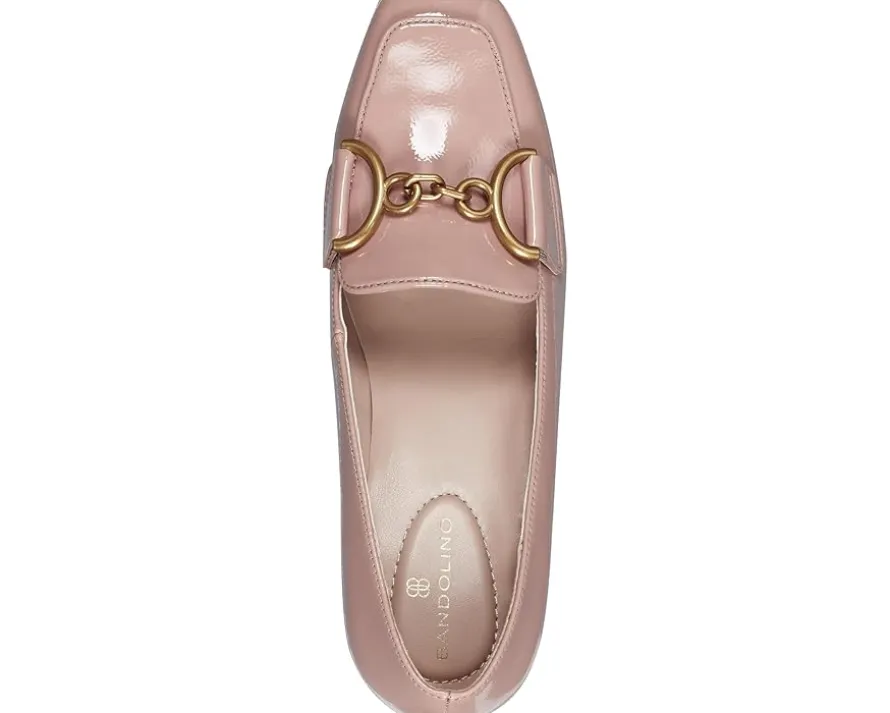 - The Bandolino® Lucien Heels are a classy addition to any casual or formal look and make you feel confident with every step you take. These come with a squared toe shape, golden hardware detailing, and a high block heel. The heels are made with a faux patent leather upper, man made lining, and foam footbed.