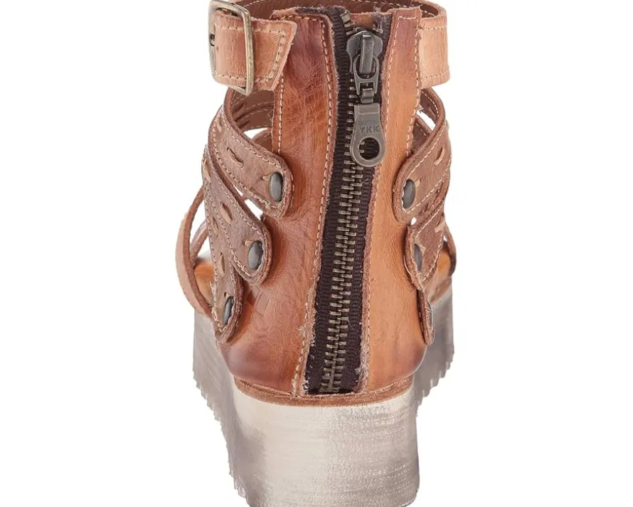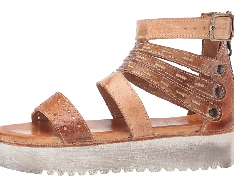 - Platform sandals feature a vegetable-tanned leather upper with stitched detailing.