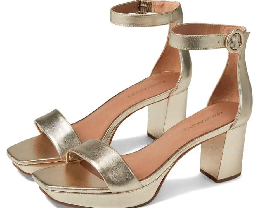 - Slay the party looks by donning the Bernardo® Carla sandals. Designed with a single strap on the upper, the stylish heels have a delicate ankle strap with buckle closure and an open, square-toe design.