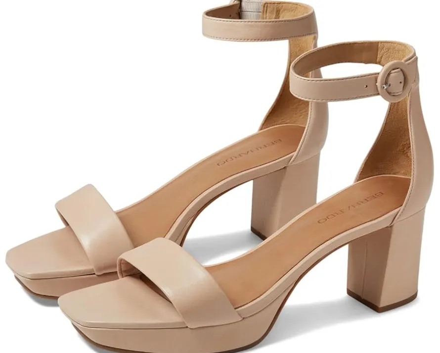 - Slay the party looks by donning the Bernardo® Carla sandals. Designed with a single strap on the upper, the stylish heels have a delicate ankle strap with buckle closure and an open, square-toe design.