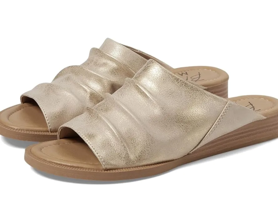 - Bring comfort to your feet by wearing the casual yet statement Blowfish® Malibu Atlantah. The slip-on has an open round-toe design with rouched faux leather upper and mule silhouette. The sandals have micro-wedge heels that add to the look. The cushioned footbed provides all-day comfort and the insole is made with BLOOM foam for prolonged wear.