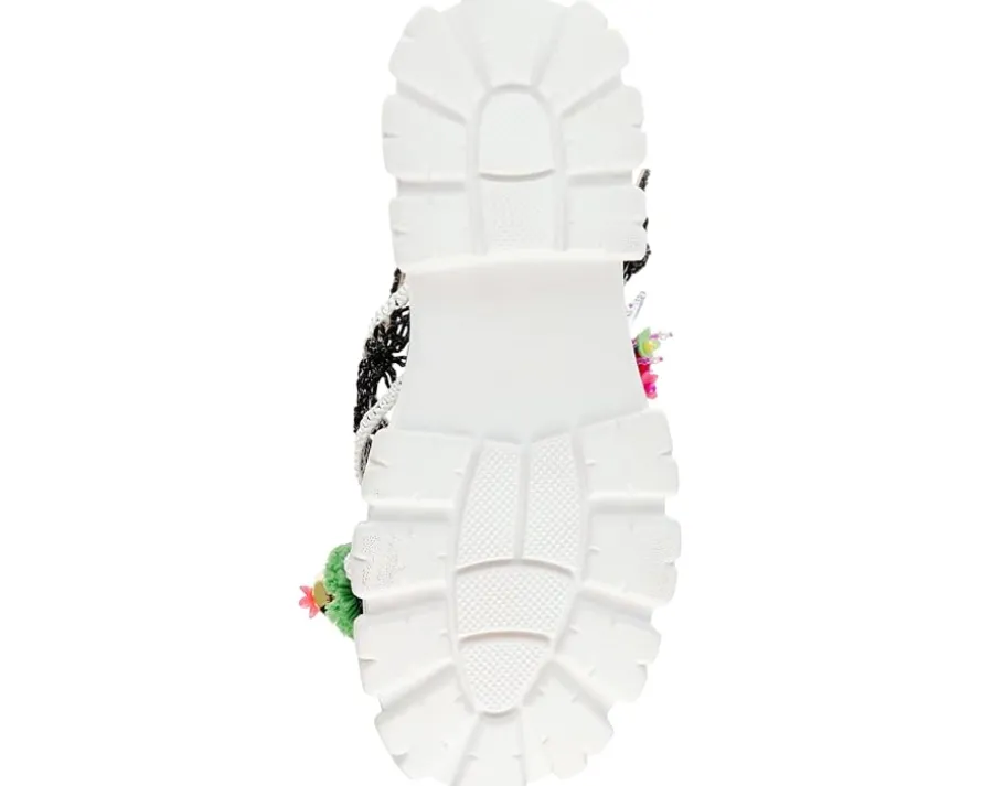 - Walk in the sunshine wearing the trendy Blue™ by Betsey Johnson Graysen. Crafted from macramé upper, synthetic lining, and insole, this pair of platform sandals features crisscross strap on the upper with cute accessories detailing, ankle strap buckle closure, low heel, and brand detailing on the footbed.