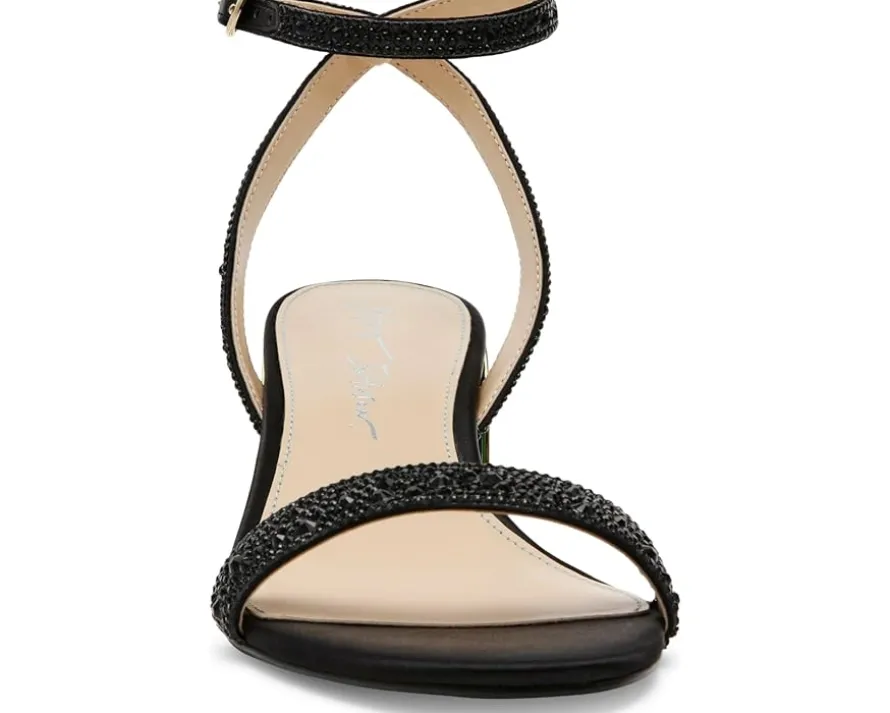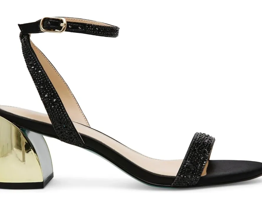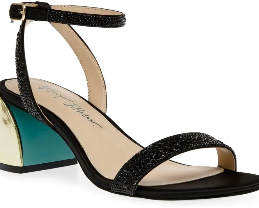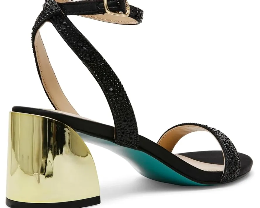 - Let the twinkling rhinestones define your uniqueness in style wearing Blue™ by Betsey Johnson Jean Sandals. The block heel footwear features PVC upper construction with adjustable buckle closure along the ankle strap and synthetic rubber outsole.