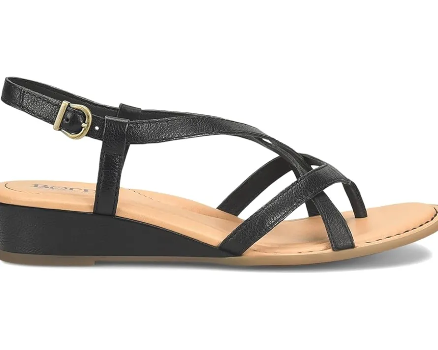 - Upgrade your style effortlessly, from island escapades to backyard gatherings by wearing the Børn® Sibyl. Crafted from sumptuous hand-finished leather or suede upper, it embraces your feet in breathable softness. With a leather-covered footbed, arch support, and Opanka construction, comfort accompanies every stride.