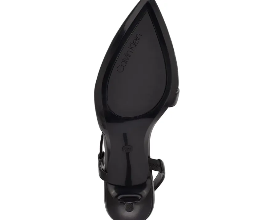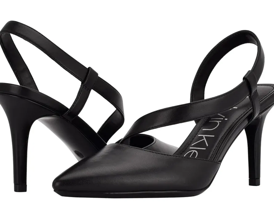 - Calvin Klein® Greer is a classy and timeless pair of dress pumps that gets a contemporary update with a stretch-infused slingback strap and a self-covered, high stiletto heel. The shoes are crafted in a pointy toe silhouette with a faux leather or textile upper, a man-made lining, and a lightly padded insole.