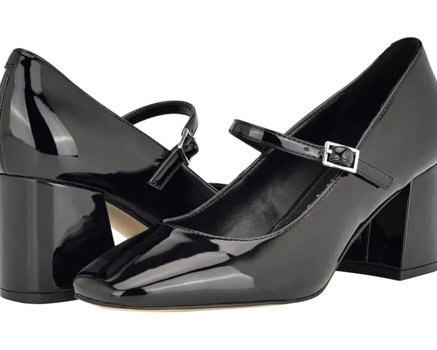 - Get ready to steal some admiring glances by wearing the chic Calvin Klein® Jatlee heels. They are designed with a square toe silhouette and stylish block heels. They have a faux-patent leather upper, man-made lining, and a padded footbed.