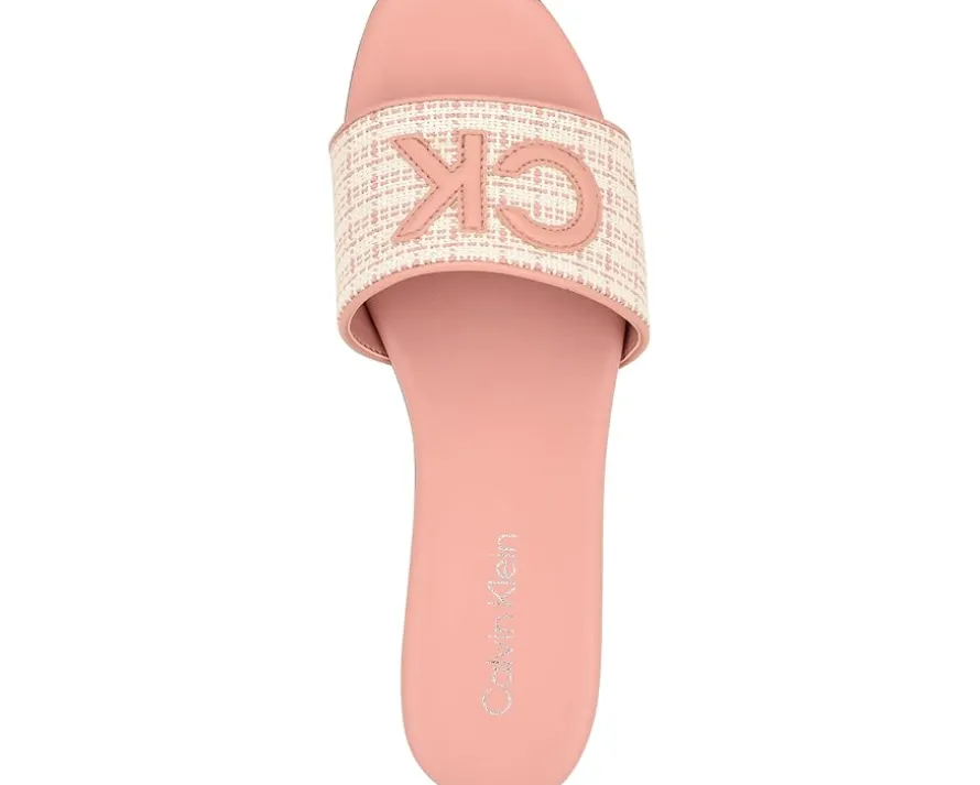 - Step in style and comfort by wearing the Calvin Klein® Yides footwear. The slip-on style flats have an open square toe design with an intricate brand logo on the textile and man-made upper. The man-made lining and polyurethane footbed with rubber insole makes this pair of flats comfortable for a prolonged duration.