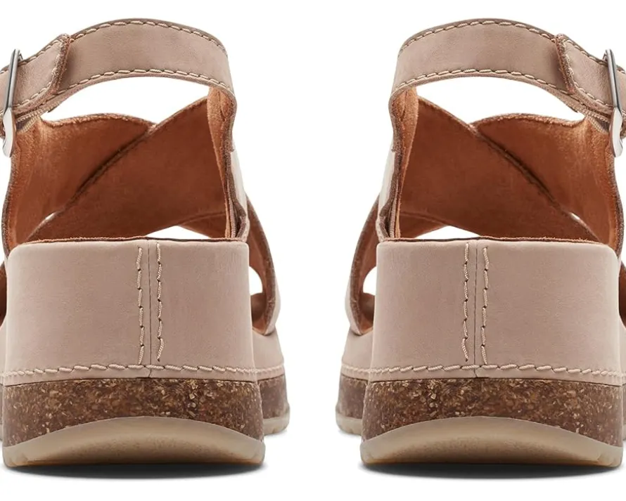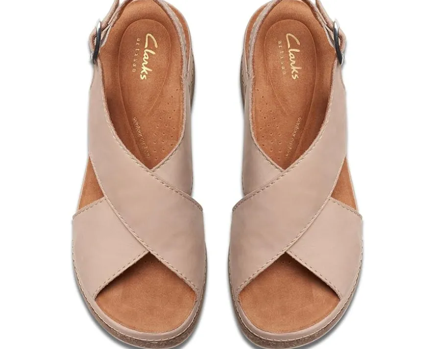 - Move out to explore the world wearing Clarks™ Kassanda Step sandals. An open toe with crossing-over wide strappy vamp and adjustable ankle strap with buckle closure ensures a supportive fit to the feet. It has leather upper, polyester lining, and rubber insole.