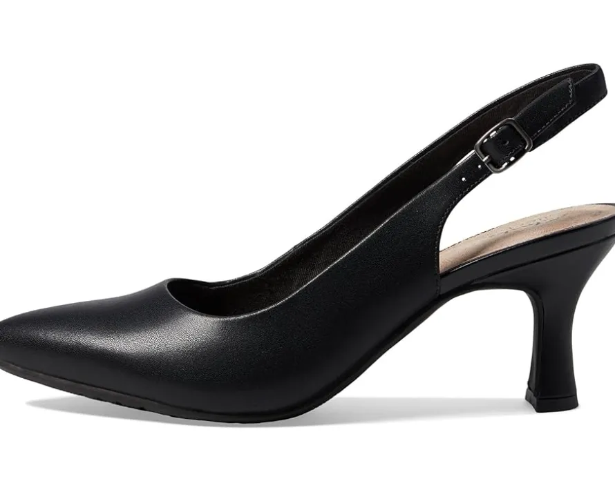 - Keep your style timelessly classic in this ever-changing world of fashion wearing the low-top Clarks™ Kataleyna Step Pumps. This pointed toe pair features a polished leather upper construction with kitten heels and buckled slingback strap closure.