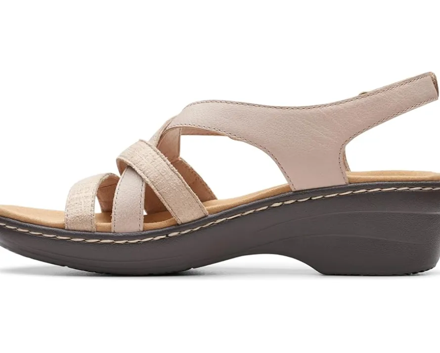- Step into elegance and comfort with Clarks™ Merliah Bonita. These wedges boast a captivating strappy design, embracing your feet with finesse. With a secure hook & loop closure and a durable rubber insole, they offer both style and support. Elevate every step with their chic round toe silhouette.