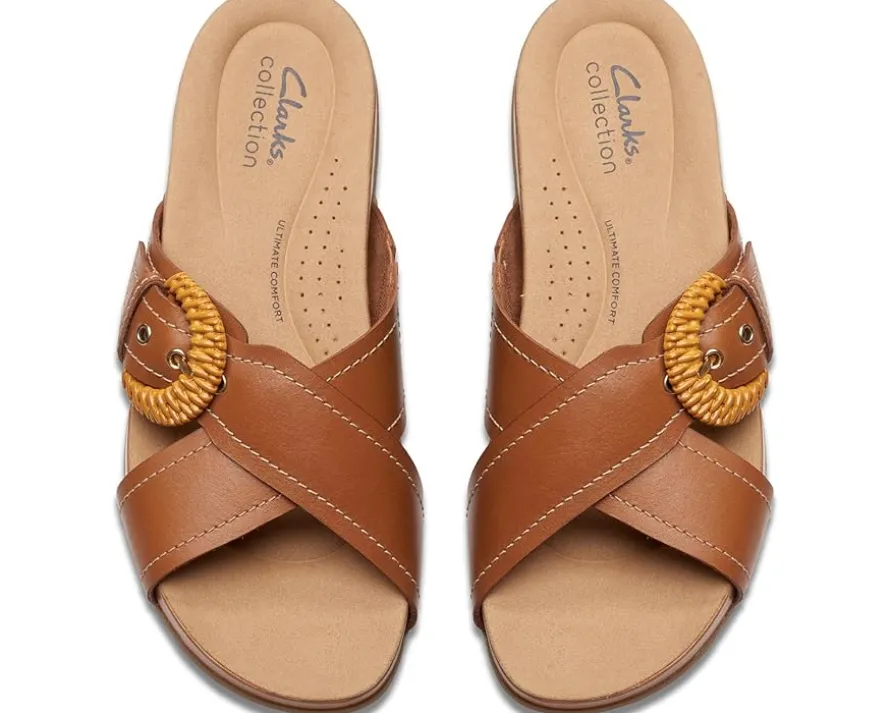 - The Clarks™ Reileigh Bay sandals are a beautiful blend of fashion and functionality. The sandals feature a high-quality leather upper, providing a sophisticated touch to any ensemble. The mesh lining allows for optimal airflow, keeping your feet feeling fresh and cool in every season. The rubber insole offers exceptional cushioning and support, making each step feel like a dream.