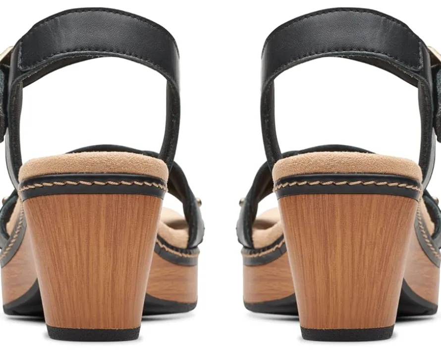 - Keep your feet free from abrasion wearing this soft and comfortable Clarks™ Seannah Way sandal. A leather upper, mesh lining, and rubber insole ensure breathability with cushioning. It has open toe, braided strappy vamp, slide-on style, and adjustable ankle strap with buckle closure. A wedge platform heel with notch provides superior traction to keep going.