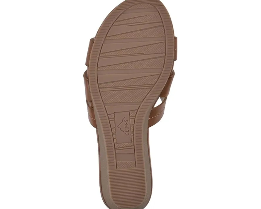 - Step into the celebration while being perfectly comfortable and stylish wearing Cliffs™ by White Mountain® Candyce Sandals. The slip-on footwear features faux leather upper construction with woven straps and open almond toe silhouette.