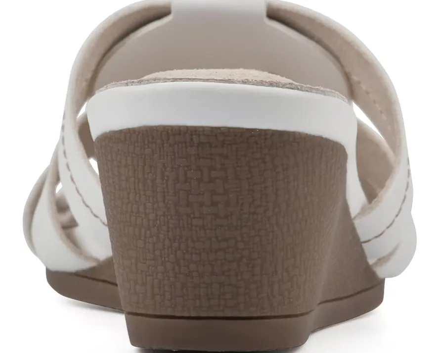 - Step into the celebration while being perfectly comfortable and stylish wearing Cliffs™ by White Mountain® Candyce Sandals. The slip-on footwear features faux leather upper construction with woven straps and open almond toe silhouette.