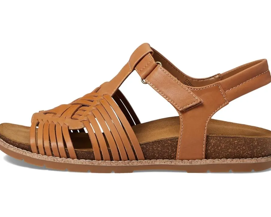 - The intricate woven leather strapped design of Comfortiva® Gladia Flat Sandals gives your feet an airy feel.
