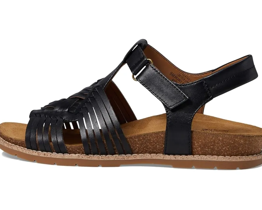 - The intricate woven leather strapped design of Comfortiva® Gladia Flat Sandals gives your feet an airy feel.