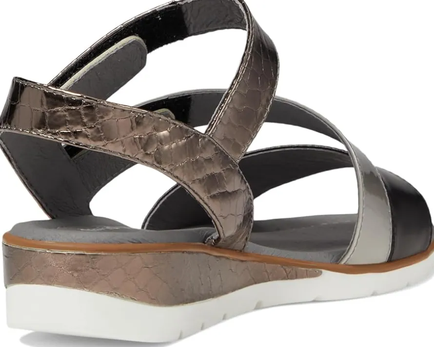 - Highlighting a tri-colored strappy leather upper and grounded on a leather-covered, memory foam cushioned insole, the David Tate® Blues Sandals are all set to become your warm weather favorite! The croc-embossed textured detailing adds an on-trend charm to these shoes while the dual-density wedge lends enhanced comfort during walks.
