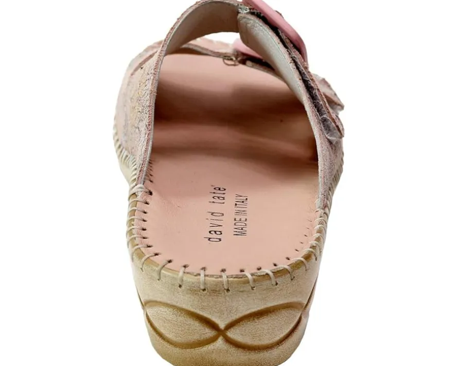 - Spice up your wardrobe wearing the David Tate® La Vida sandal showcasing a garden printed leather upper, dual adjustable hook-and-loop closures, and extra foam padded leather covered footbed for added comfort.
