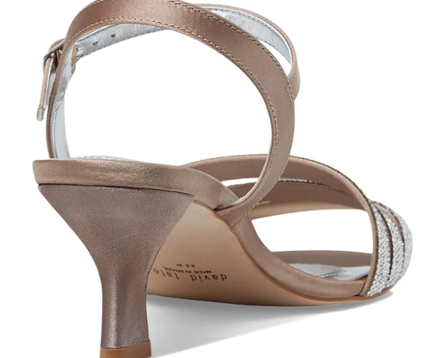 - No matter the occasion, complement your flawless look in the David Tate® Trio sandals. Featuring a round, open toe silhouette with beautiful rhinestone on the triple banded strapping and an adjustable buckle closure strap.