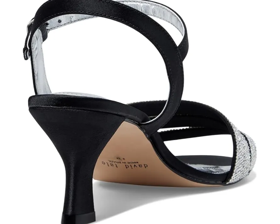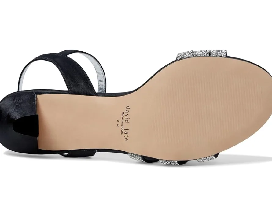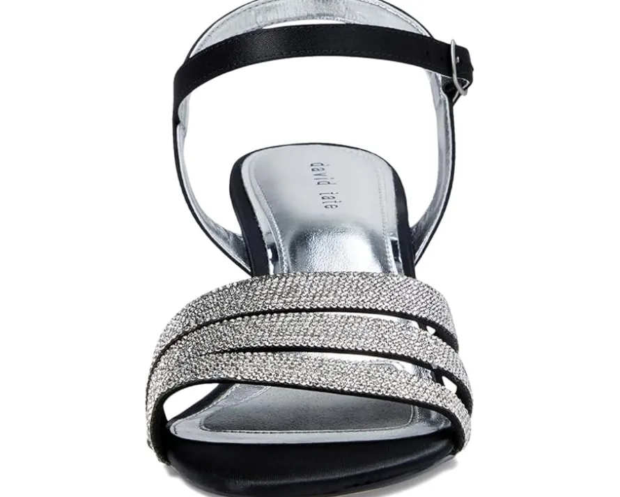 - No matter the occasion, complement your flawless look in the David Tate® Trio sandals. Featuring a round, open toe silhouette with beautiful rhinestone on the triple banded strapping and an adjustable buckle closure strap.