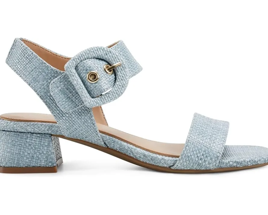 - Bring elegance to your steps by wearing the Easy Spirit® Selina heels. The slip-on style footwear has an open-square toe design, buckle closure, strappy silhouette, and block heels. The sandal has a leather upper, man-made lining, and cushioned foam footbed for a comfortable wearing experience.
