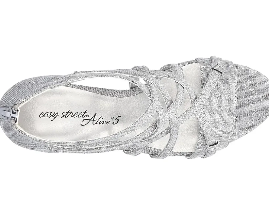 - A sleek and strappy faux leather upper with an open round toe and a stable stiletto heel adds contemporary elegance and charm to the Easy Street® Bee Heels. Versatile and comfortable, these shoes are designed with gored elasticized straps for a flexible fit, a zippered back closure for easy on and off, and a foam padded insole for cushioning comfort.