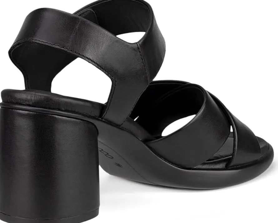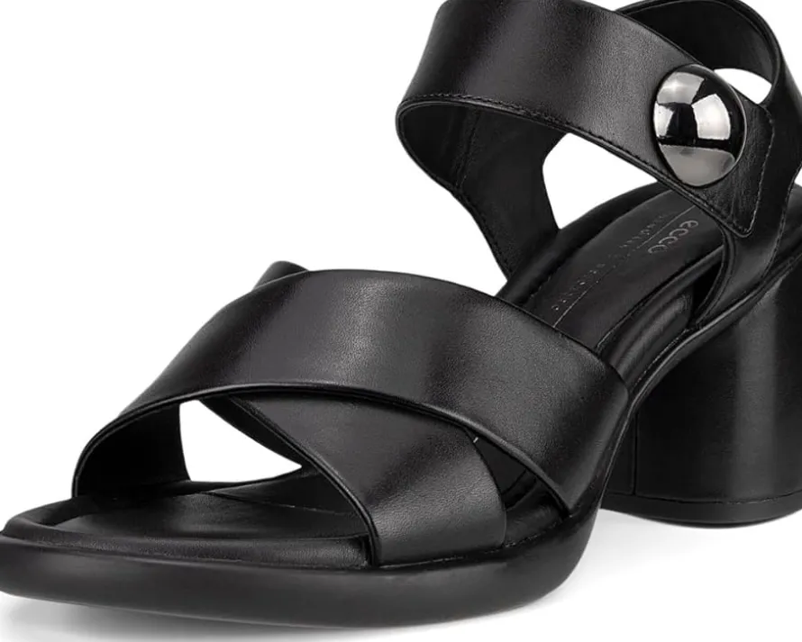 - Enhance the beauty of your feet wearing the ECCO® Sculpted 55 Luxe Button. Crafted from leather upper, lining, and insole, this pair of sandals features round toe silhouette, crisscross strap detailing on the vamp, quick-fastening ankle strap for a secure and adjustable fit, block heel, and brand detailing on the footbed.