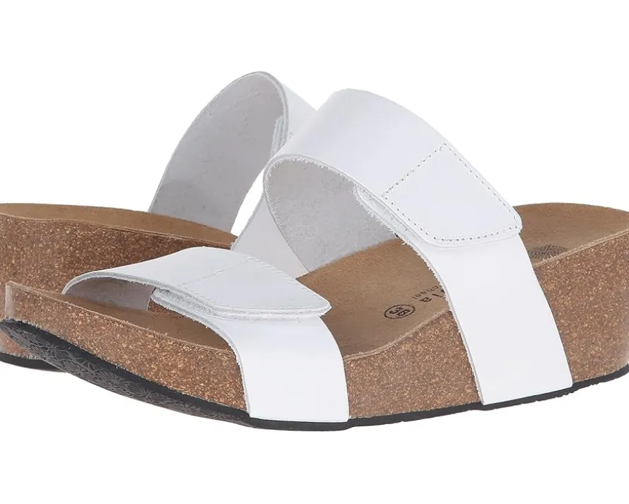 - Lightweight cork platform sits atop a durable rubber outsole.