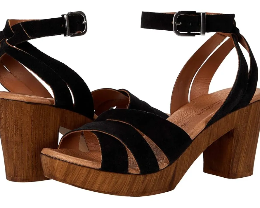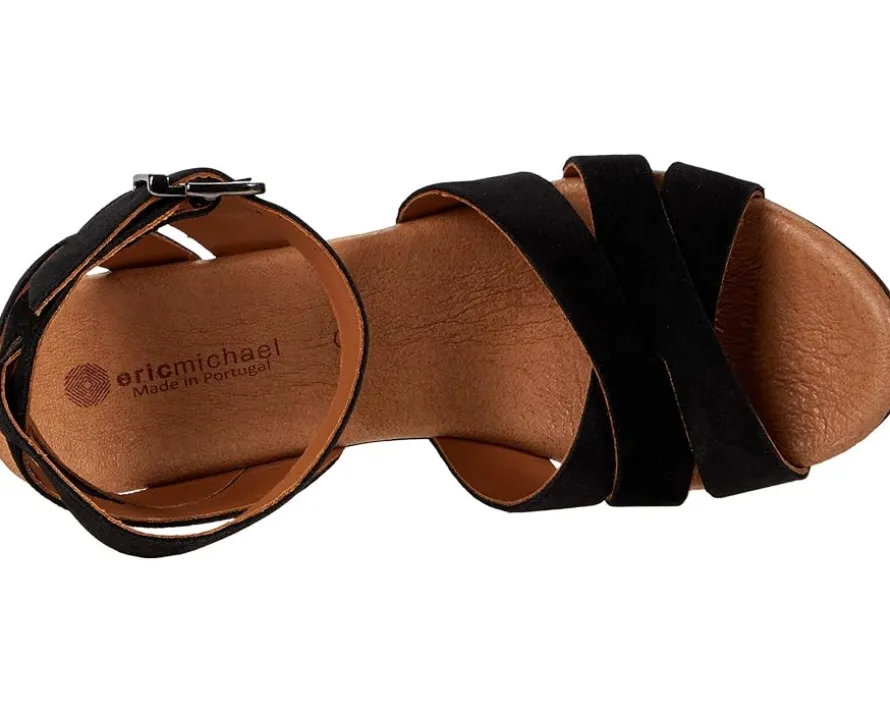 - Wow the crowd in these Eric Michael® Luna heeled sandals. The leather uppers have a crisscross accent at the heel and ball with an adjustable closure at the ankle.