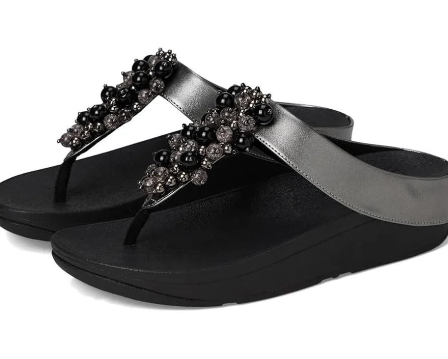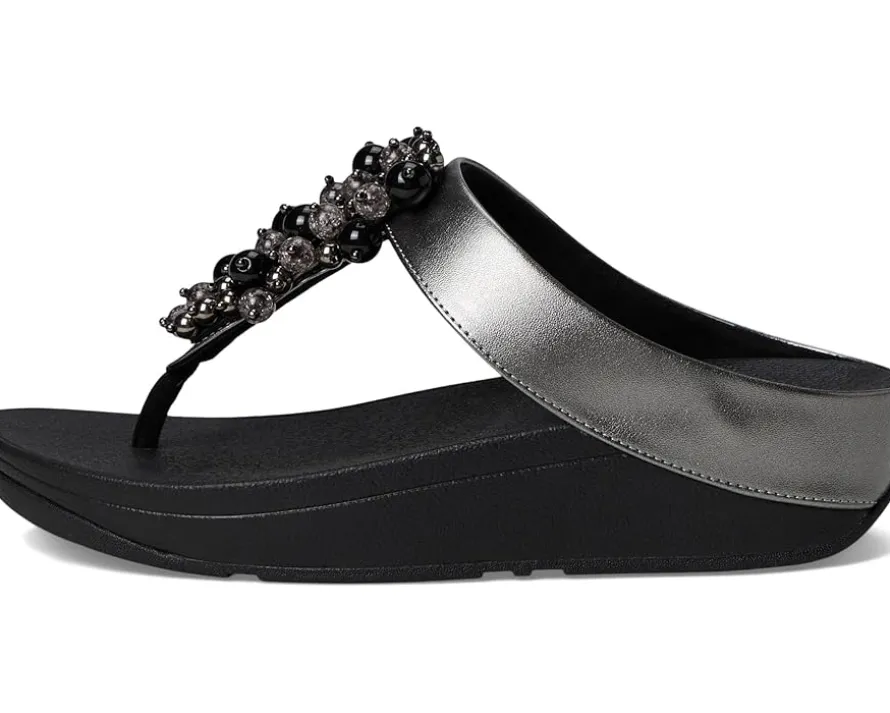 - Boldly showcase your style with the FitFlop™ Fino Bauble-Bead Toe-Post Sandals. These sandals feature a cushioned footbed, soft toe post, and a pressure-diffusing Microwobbleboard midsole for all-day comfort. The metallic pearl faux-leather and glossy ‘bauble-beads’ on the front strap add a touch of sparkle to any occasion. With a wedge heel and easy slip-on design, they’re perfect for daytime chic or evening extravagance.